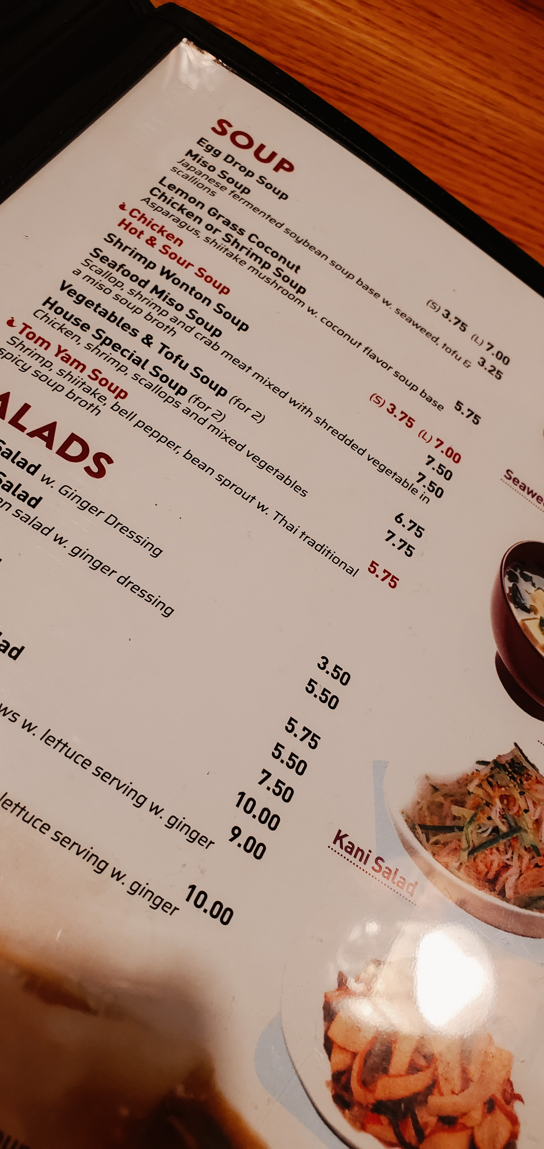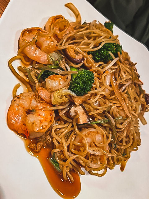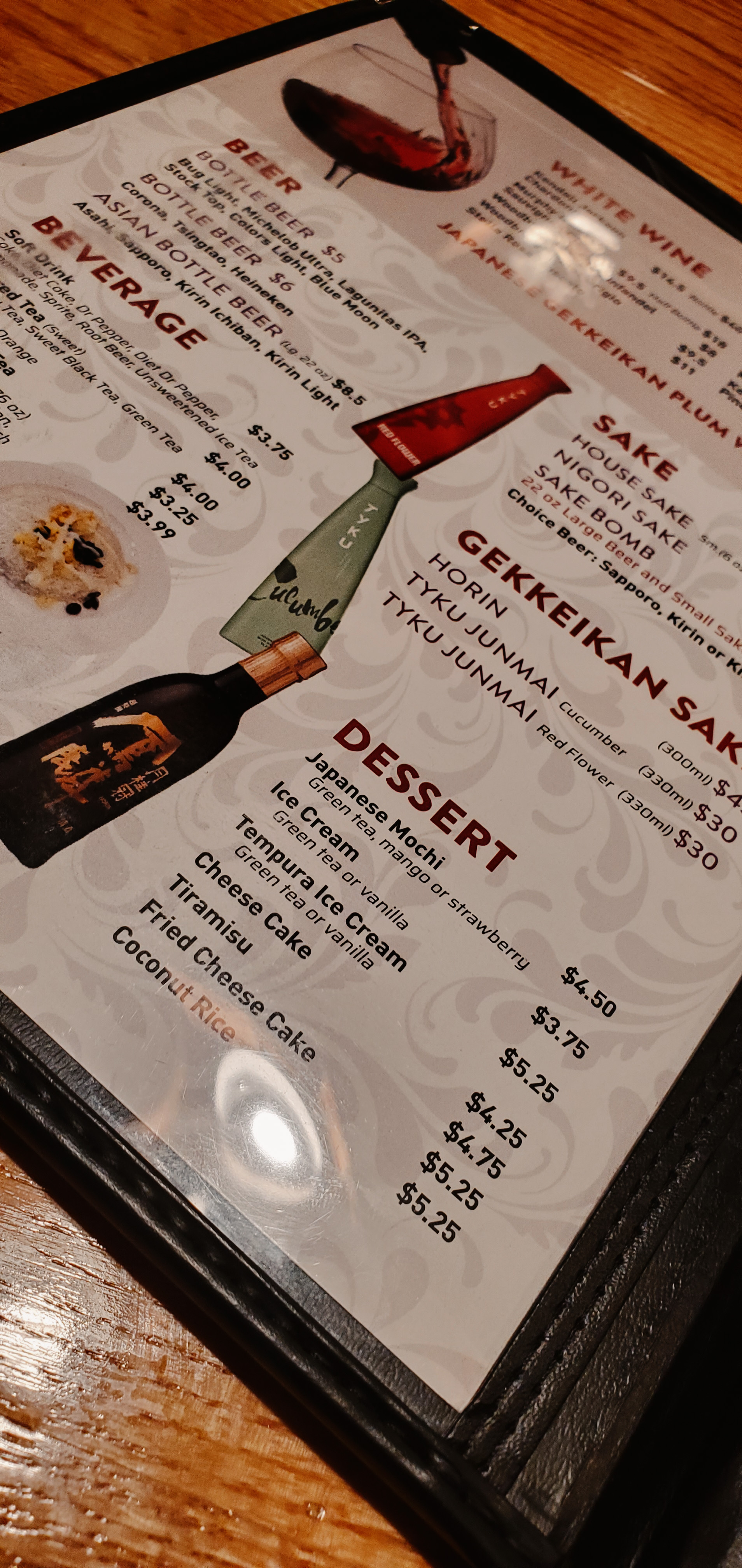 Finally, a dish I won’t be ordering again—and likely not from the entire category of dishes—their Samurai Roll, described as crunchy and spicy, was neither crunchy nor spicy. They were too heavy-handed on the crabmeat “topping,” and the batter on the shrimp tempura inside the roll was an unappetizing brown. The rice was dry and loose. I swallowed it only because I had committed to chewing it in the first place. The best thing about it was the well cooked shrimp. Much better sushi rolls can be had at Fujiyama, although overall it’s a known challenge to find good sushi in Prescott.
