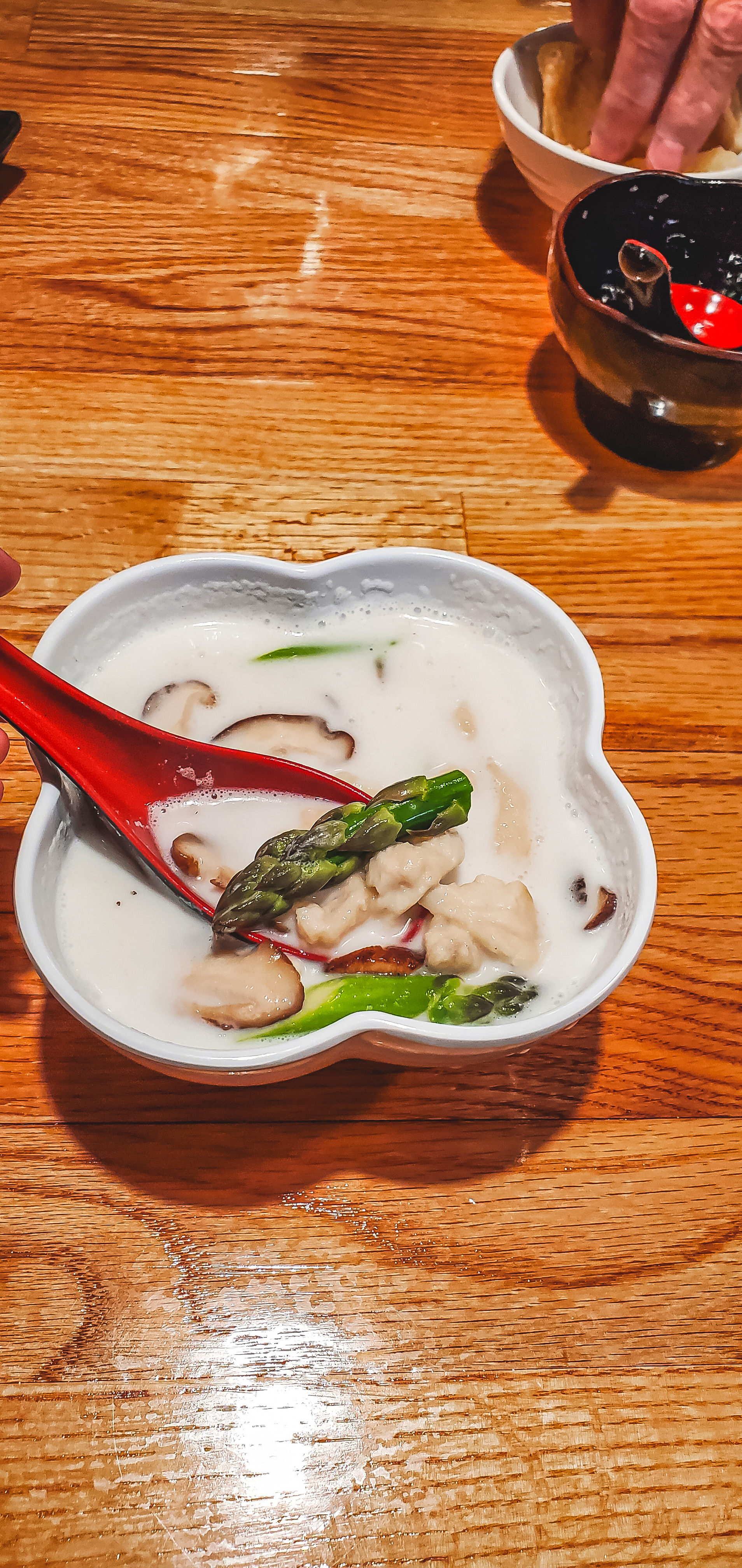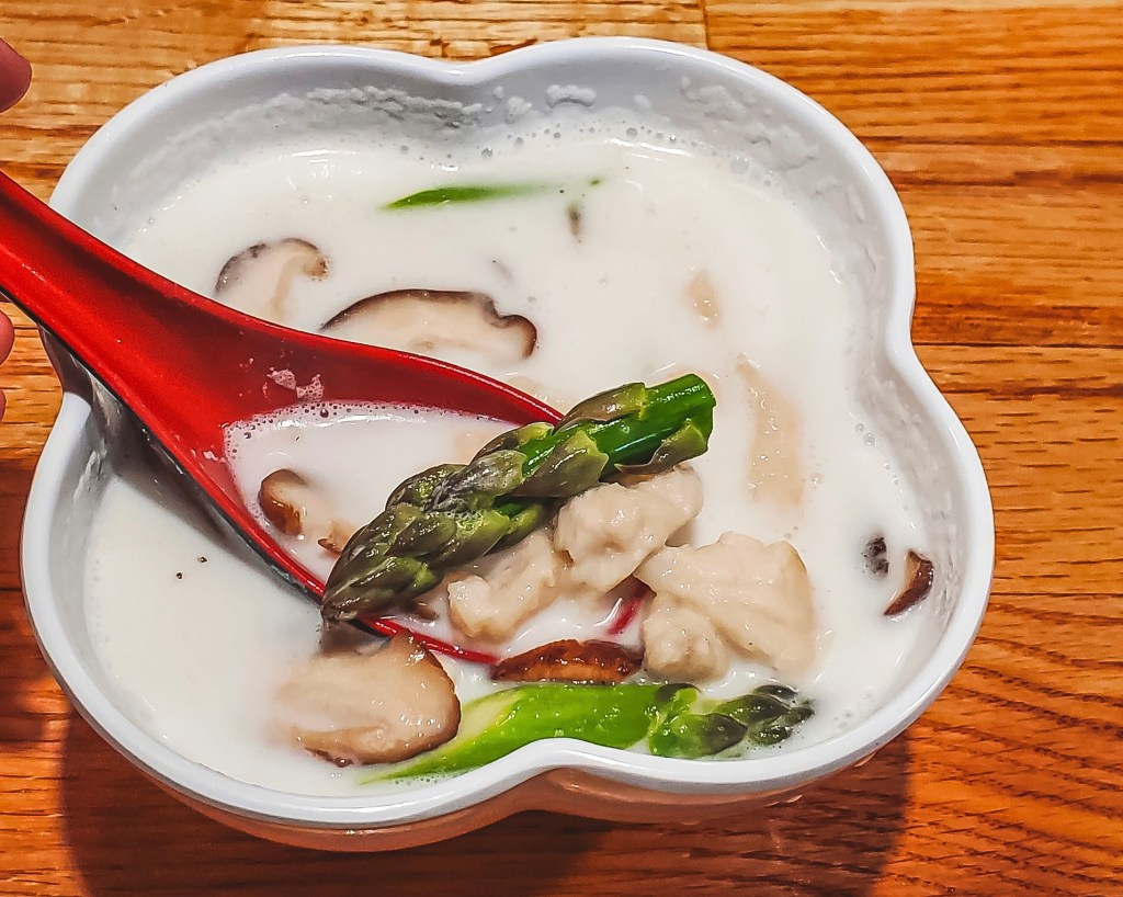 The lemongrass coconut soup seemed to be without any actual lemongrass. It has a largely unseasoned coconut broth, moist chicken, and newly picked asparagus and mushrooms. A great high-calorie keto dish to break up your meal-prep routines while getting aminos and vitamins. I might order this again.
