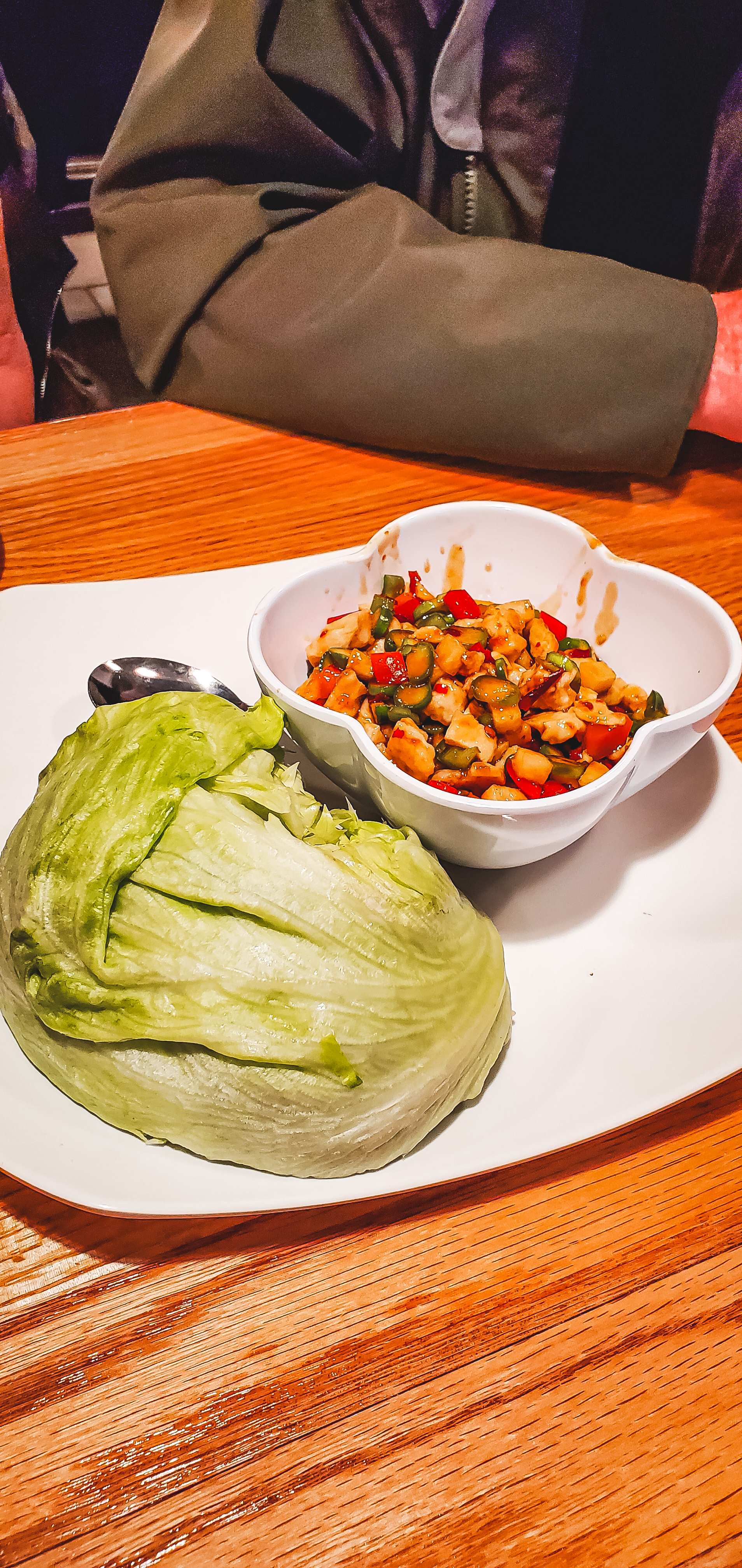 The lettuce wraps are served with half a head of iceberg lettuce. For a kitchen in a smaller desert town (“but we’re not in the desert!” I can hear you protesting, dear ponderosa pine Prescottonian), it’s hard to stock and use the more tender-leaf lettuces predictably enough to justify the extra expense; the iceberg was crisp and green and worked. The sauce was sweet and tart in a way that reminded me of khmer cuisine, and there were chopped fresh bell peppers and asparagus. I would order this again.