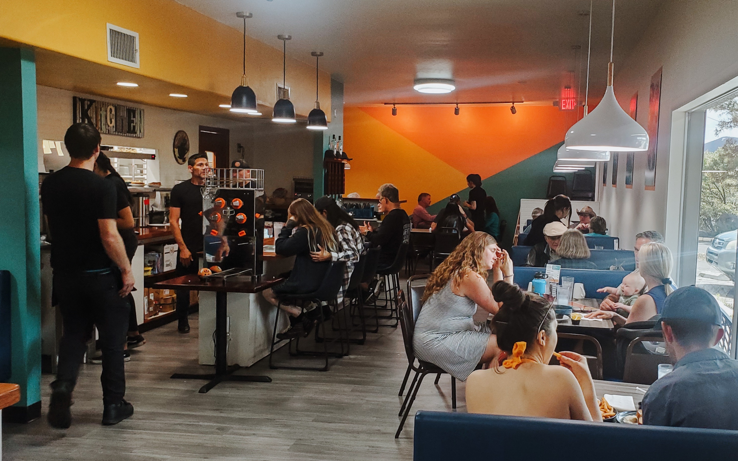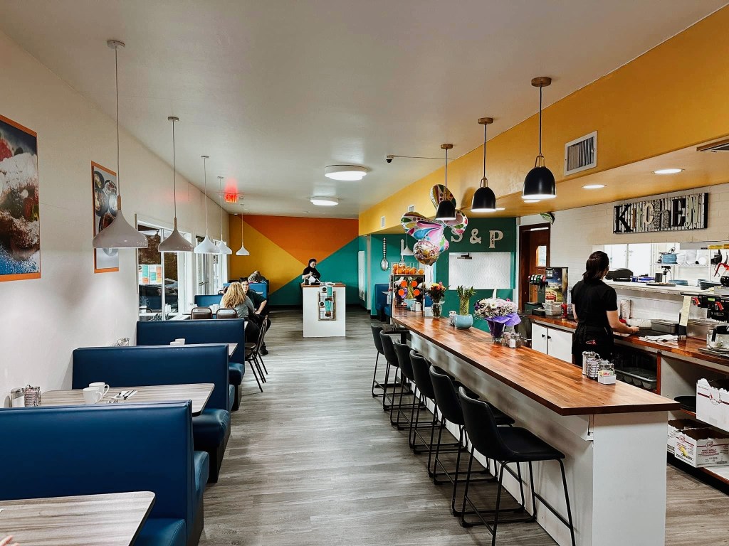 A bold, simple, modern color scheme on the inside, Salt and Pepper has traditional diner seating including both booths and bar seating. I slid right in at the bar at 11:45am on a Sunday. Waiting for a table would have been around 15 minutes. Not bad for how busy they were, and busy they remained.