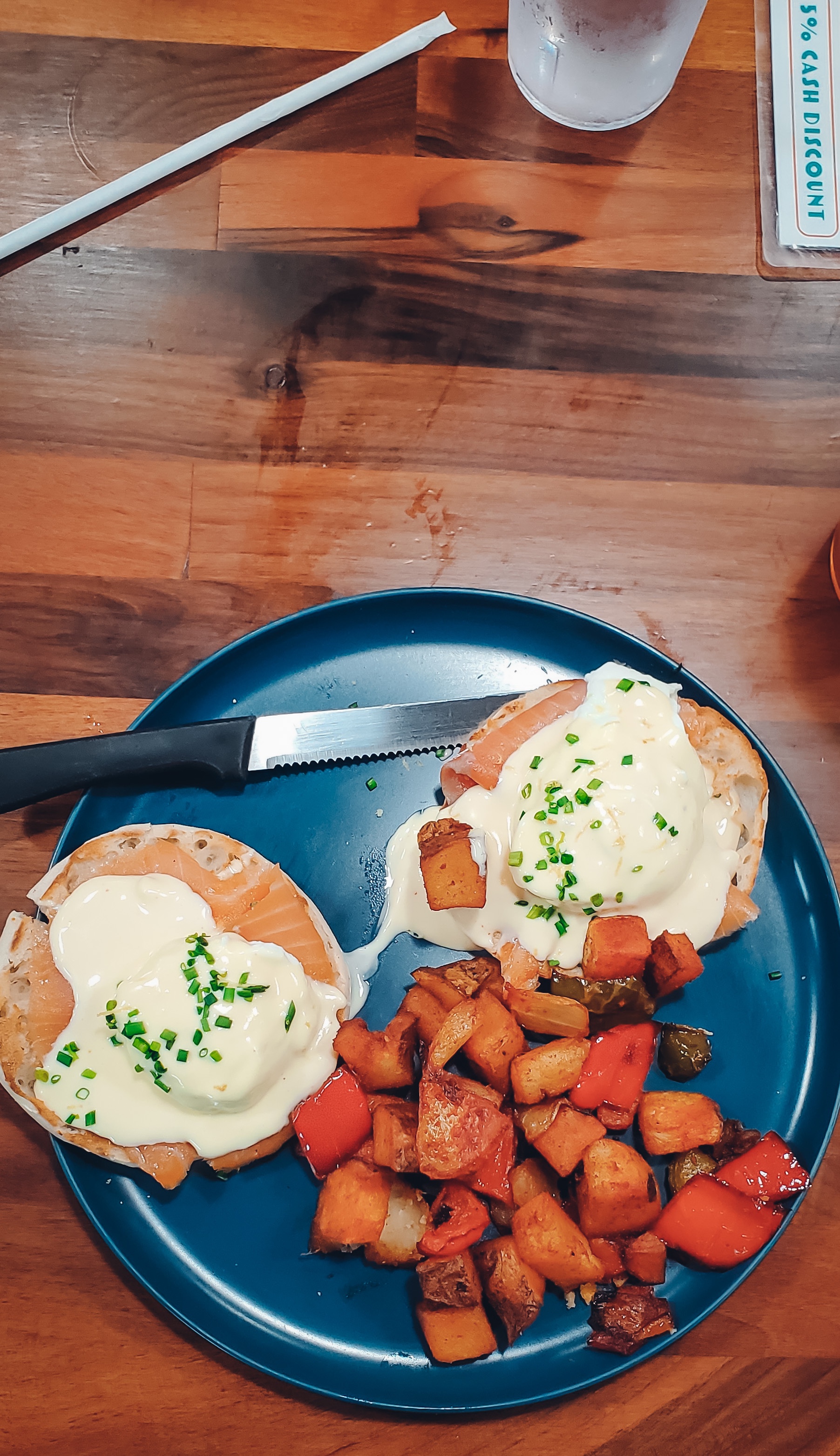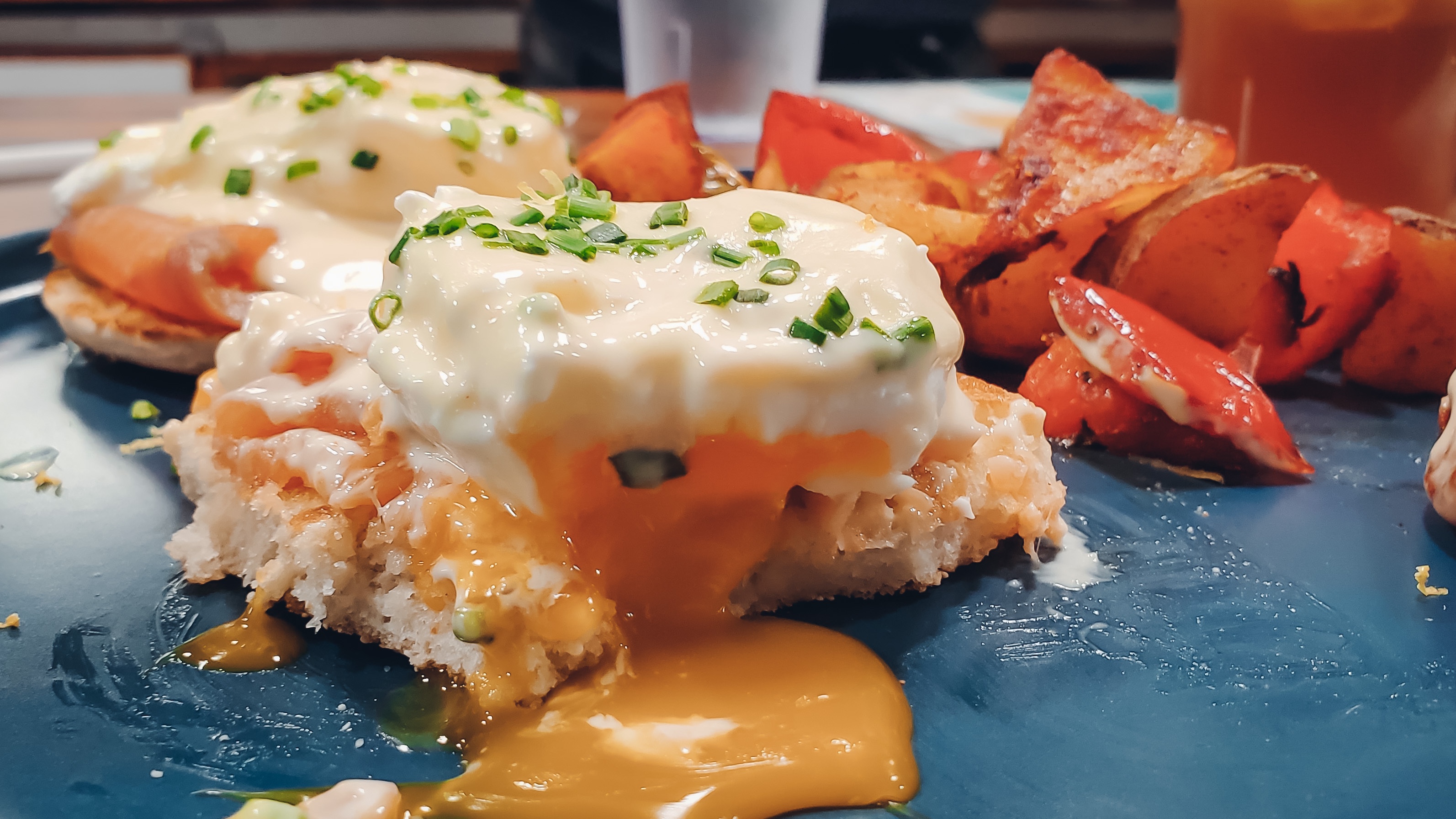 So I doubled down. I ordered the smoked salmon benedict that comes garnished with lemon zest and a matching-ly tangy hollandaise. That sauce will bring me back on its own. A couple things I loved about this dish besides the memorable hollandaise with a bite: the lemon zest wasn’t some measly breath of possibility of lemon peel, but was legit, visible shreds of the stuff, and it was appreciated. The eggs’ yolks were a beautiful dark marigold, and the whites weren’t runny at all. Readers, is it just me, or is it hard to find poached eggs with whites that don’t go full snot river when you open them? Salt and Pepper’s chefs did it just right with a yolk that holds itself steady for a brief moment upon gentle removal of the actually cooked white. And thank you for bringing me a steak knife with the plate. Anybody who eats eggs benedict enough to write about it knows that English muffins have some teeth to them, so my knife needs teeth too, or else I’ve signed up for a frustrating wrestling match with a butter knife. (There are a couple other breakfast spots in town that need to get this memo).