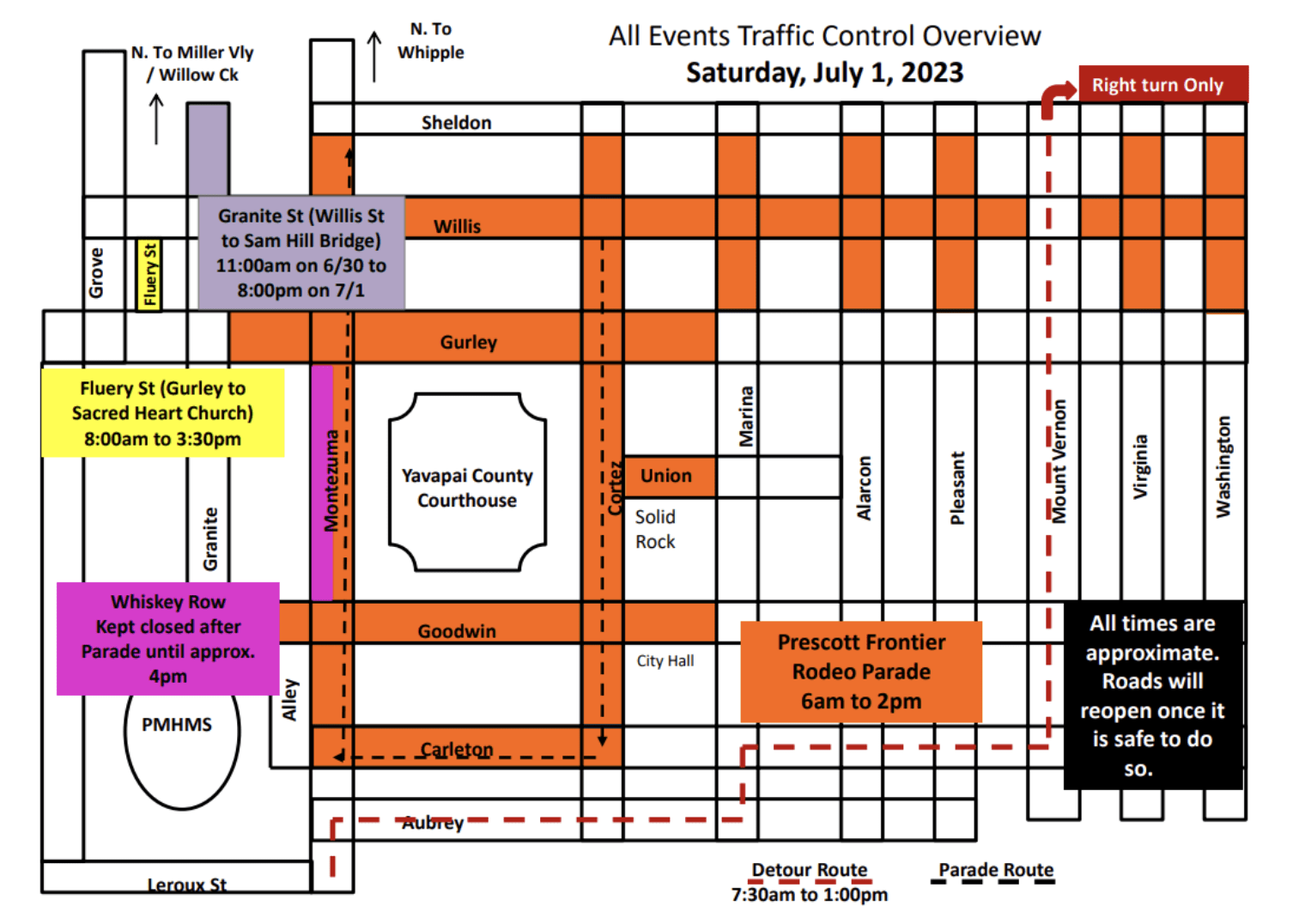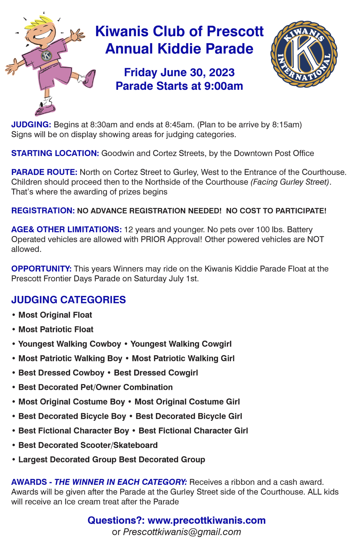 - 9:00 AM – Kiwanis Kiddie Parade (Downtown Prescott)