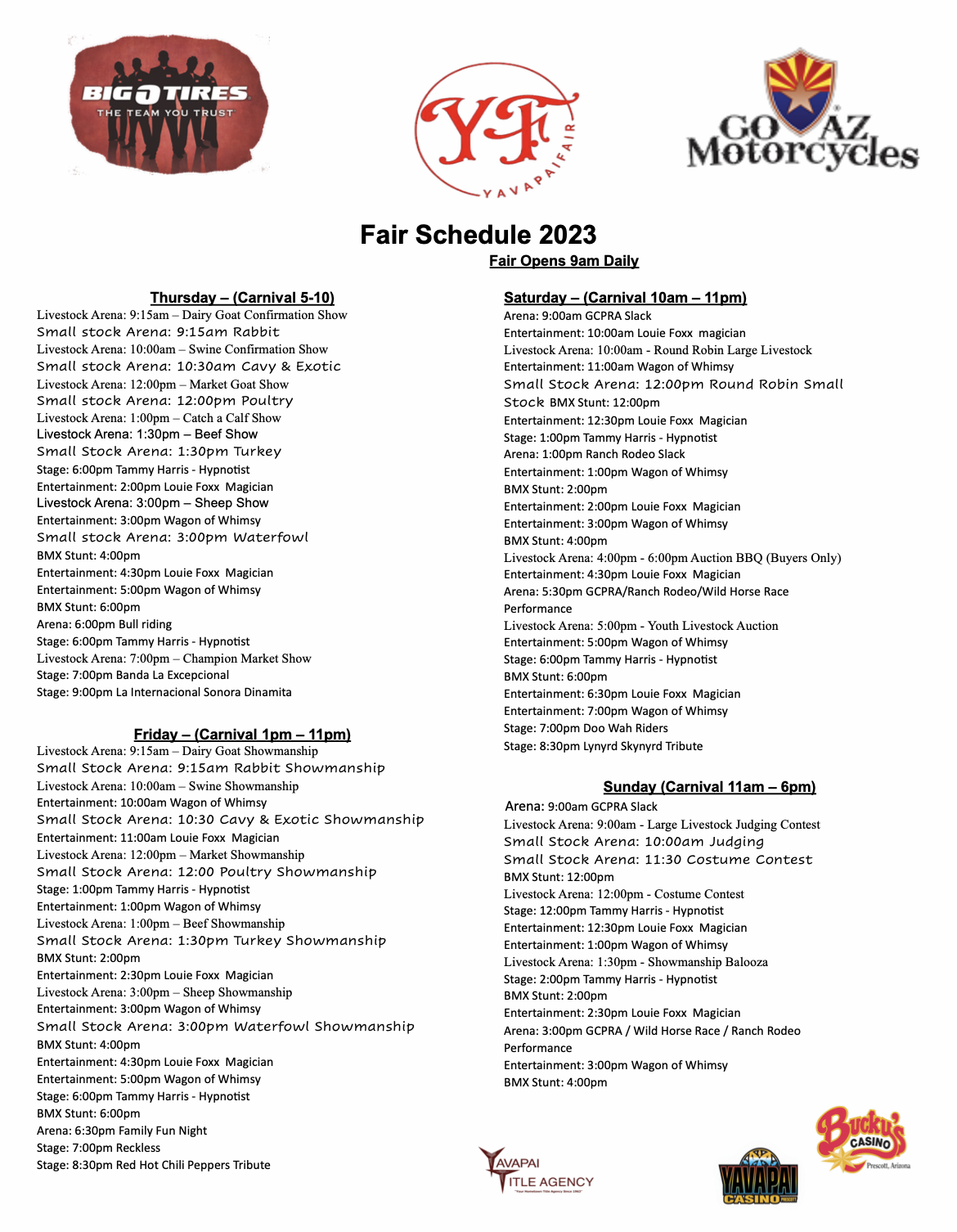 Welcome to the 110th annual Yavapai County Fair! Mark your calendars for September 7th to September 10th, as this exciting event promises four days of joy, thrills, and endless entertainment.